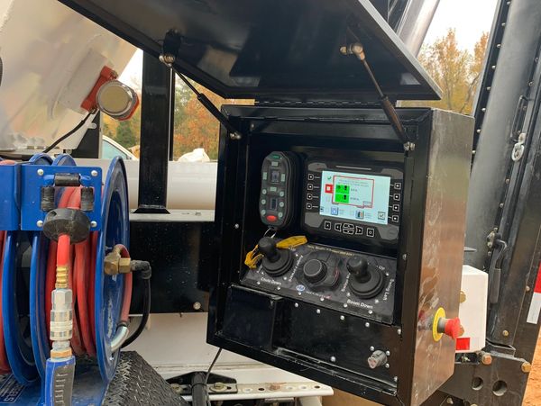Our touch screed controlled concrete truck is riddled with technology and special features. Changing slump is not an issue with us - we can add or reduce water in the mix to change concrete slump higher or lower, and back again! The entire pour is monitored by our trucks computer system and a metered report can be produced with mix data and totals. The control and accuracy of concrete production is quite amazing.